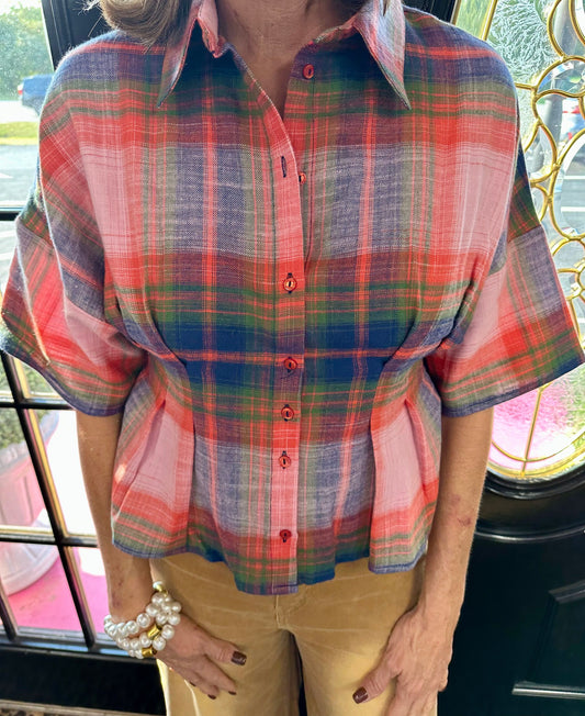 Perla Passion Plaid Fitted Top