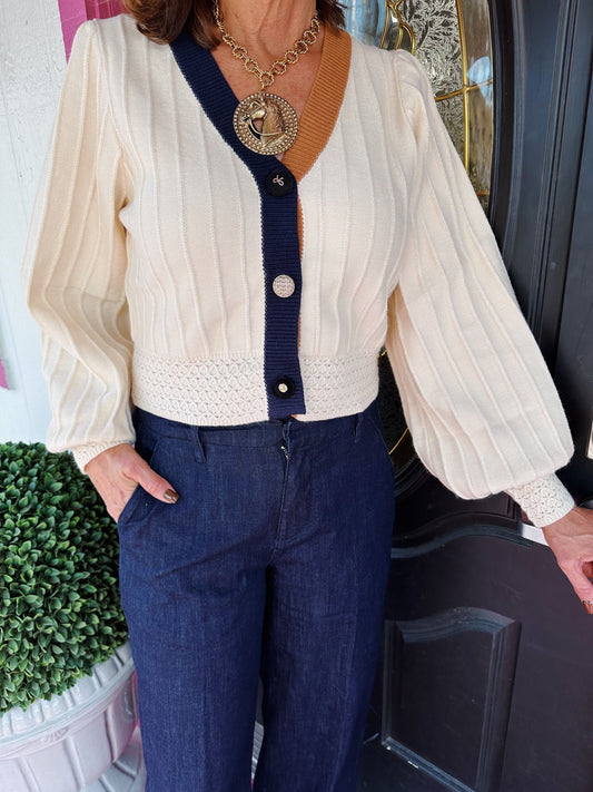 Cream Colorblock LS Cardigan