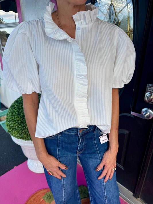 White Ruffle Collared Neck Top