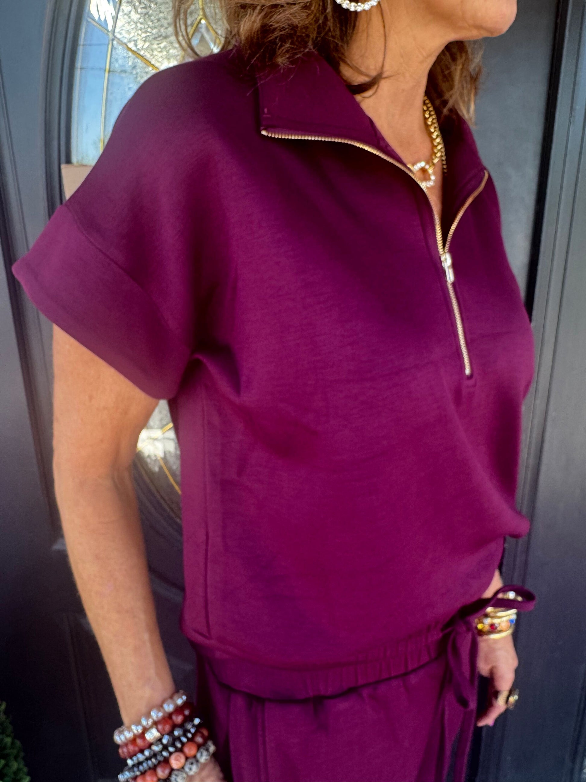Burgundy 1/4 Zip SS Short Set