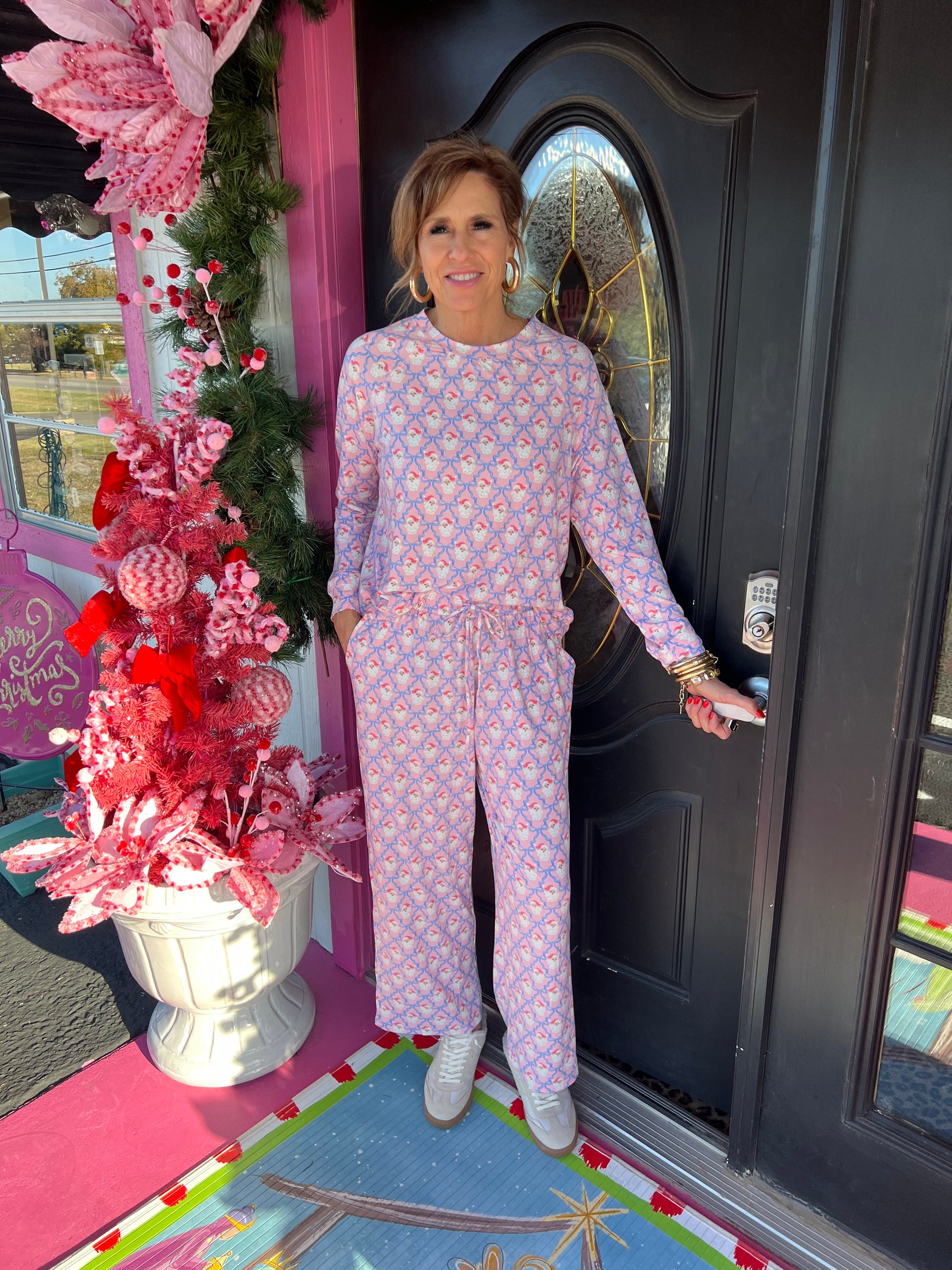 Slip into pure comfort with the Annie Santa Baby Bows PJ Set—the softest pajamas you'll ever wear. Featuring a cozy crew neck, full-length pants, and an adjustable drawstring elastic waist for the perfect fit, these pajamas are your new bedtime essential. Whether you're lounging at home or catching some quality sleep, you'll love how incredibly soft and snuggly they feel against your skin. Sweet dreams await!