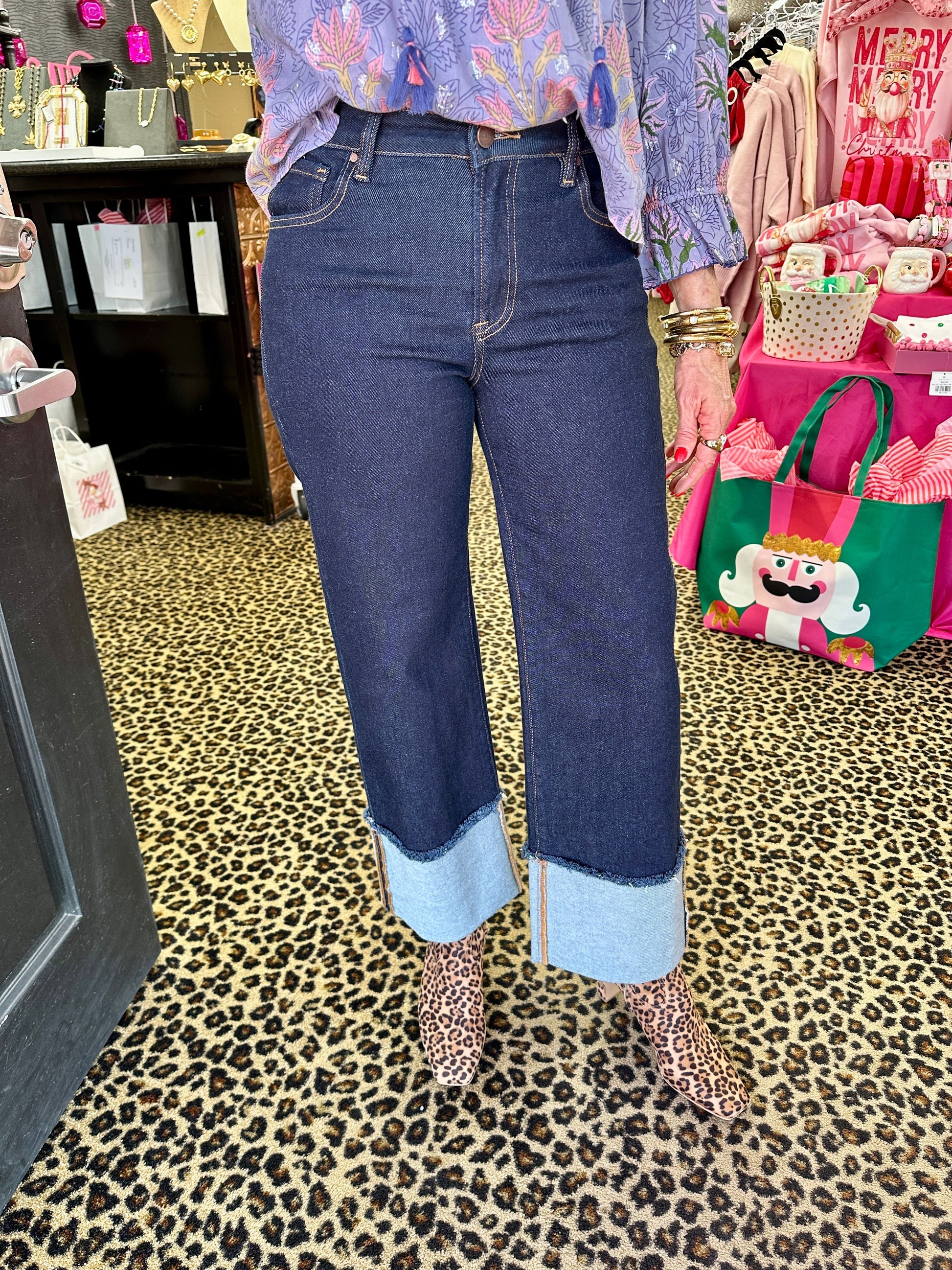 Say hello to the Dark MR Wide Leg & Cuff Jean—the denim that does it all! This timeless style blends cotton with polyester and spandex for a comfortable fit that actually moves with you. The mid-rise cut flatters every frame, while the dark wash keeps things versatile and easy to style. Those signature wide cuffs add a retro-cool touch that elevates your whole outfit, and the straight-leg silhouette is a classic that never goes out of style. Dress them up with heels or keep it casual with sneakers—either way, you'll be looking effortlessly put-together!
