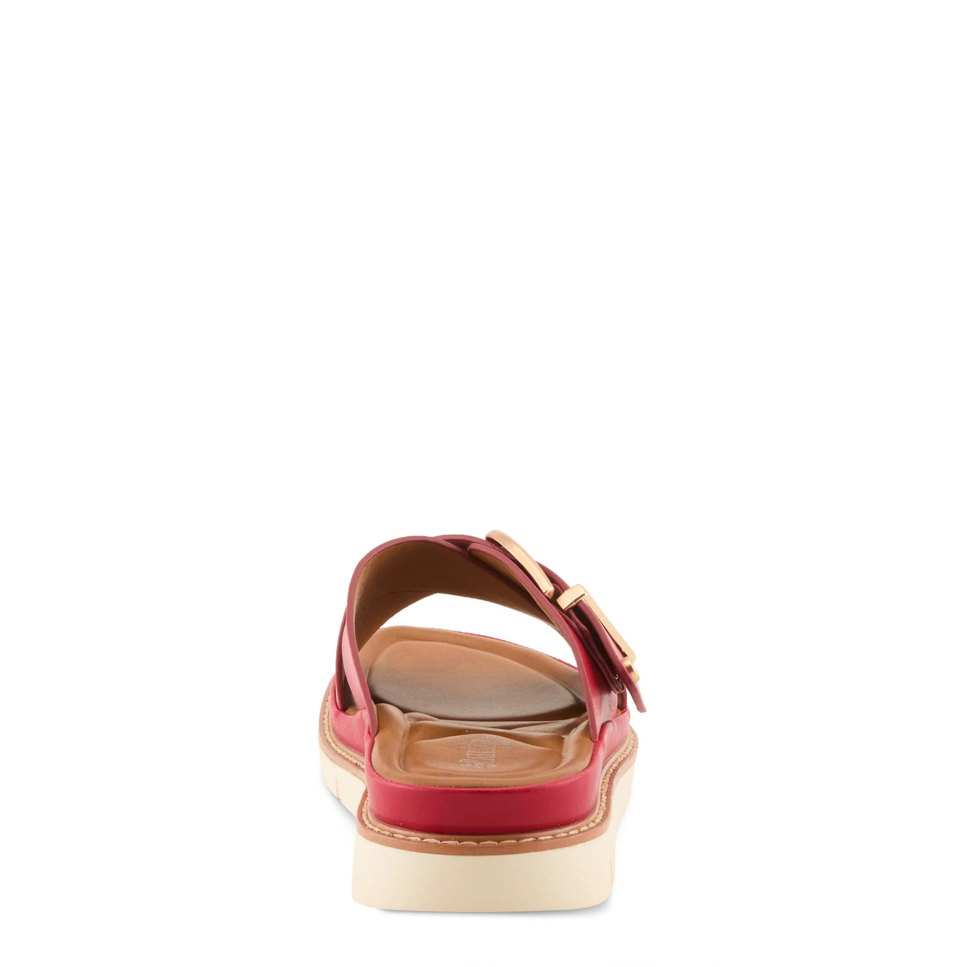 Effortlessly chic slide sandal that brings modern sophistication to your everyday look. Crafted from faux leather with sleek crisscross straps and updated hardware for a polished, dimensional accent. The adjustable buckle delivers a secure, customized fit while the cushioned insole with arch support keeps you comfortable all day long. Lightweight and flexible sole pairs perfectly with casual denim, summer dresses, or skirts. Trendy, cool, and timeless—the perfect blend of style and practicality.