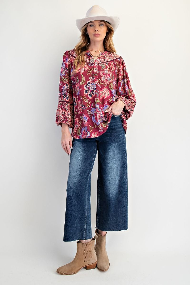 Step into effortless charm with the Red Bean Floral Bubble Sleeve Top. Featuring a relaxed fit and vibrant floral pattern, this playful piece is perfect for sunny days. Balloon sleeves add a fun, whimsical flair, while the button-front closure keeps things easy and stylish. Crafted from 100% rayon, the flowy, airy fabric ensures comfort and a breezy feel all day long.