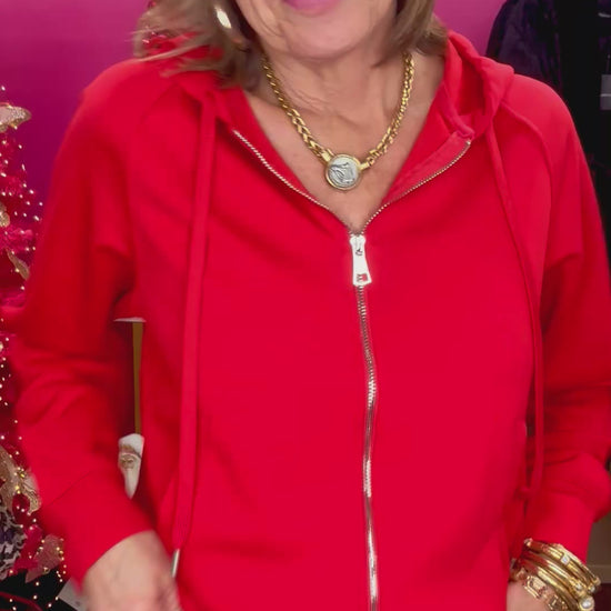 Cozy meets versatile in this red knit hoodie that's basically two outfits in one. The buttery-soft blend of rayon, polyester, and spandex feels amazing against your skin, while the front zip lets you rock it as a laid-back shirt or throw it on as a jacket. Drawstring hood included for those days when you want to disappear into comfort. Perfect for layering or going solo—your new go-to piece is here.