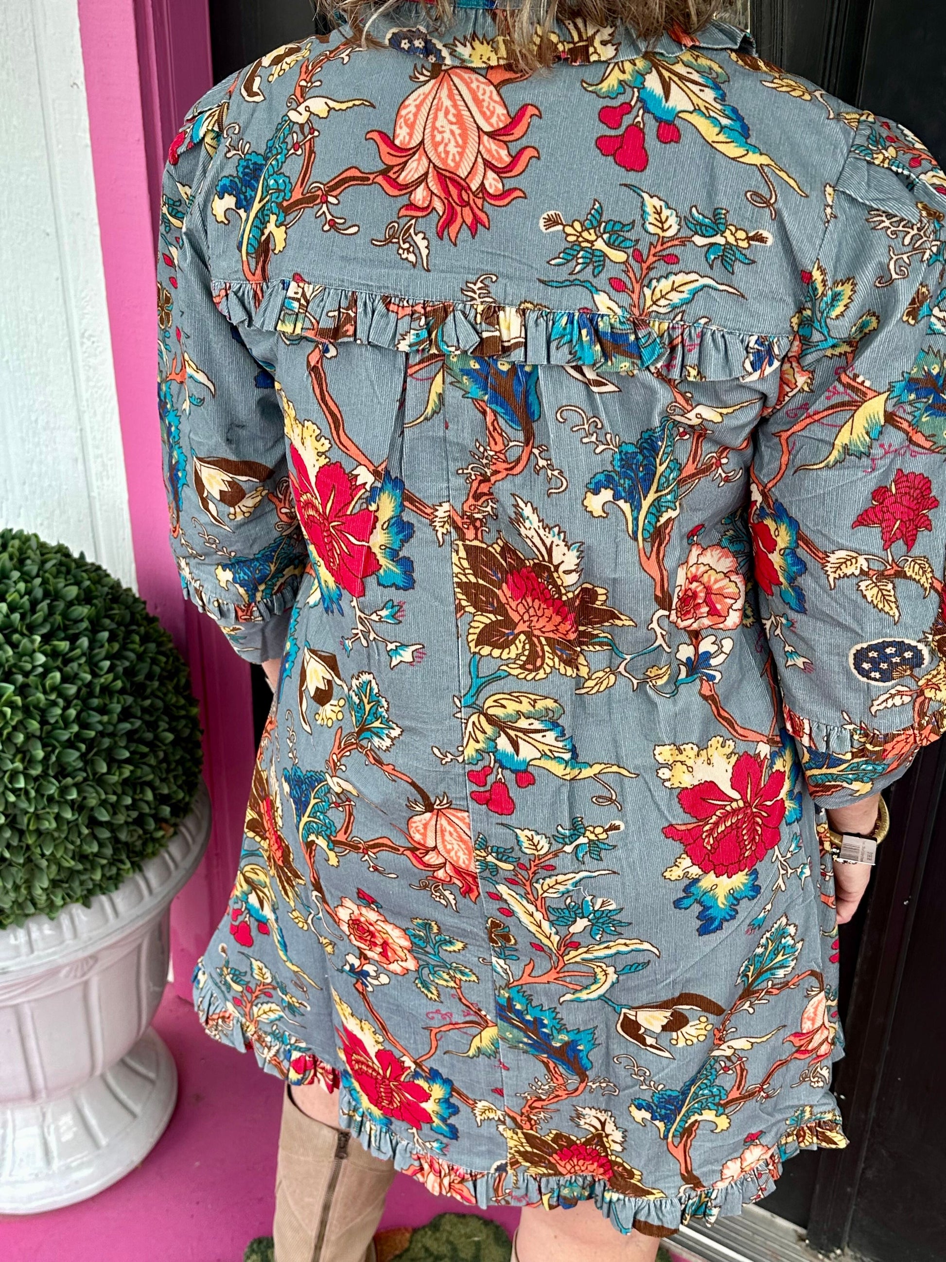 Made from soft 100% cotton fine corduroy, this playful dress features charming 3/4 sleeves and convenient front pockets. The button-up front adds a touch of classic style, while the ruffled collar and hem bring a fun, flirty finish that’s perfect for any casual day out.