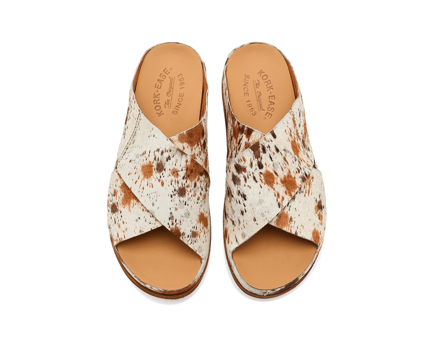 Wide crisscross straps create striking visual depth on this genuine calf-hair platform slide. The 1" platform and cushioned footbed deliver comfort for all-day wear, while the treaded rubber sole provides reliable traction. Textured calf-hair upper with textile lining combines style and durability in a versatile accessory that elevates any look.