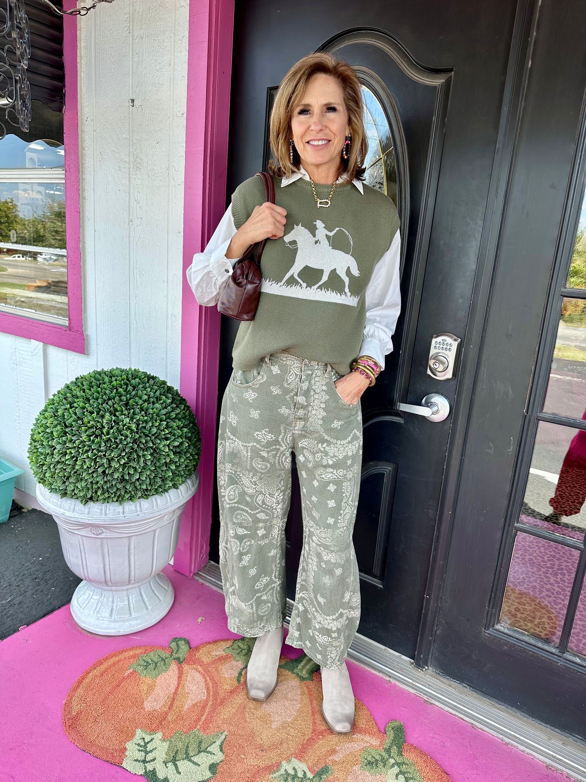 These Vintage Army Paisley Barrel jeans bring a fun twist to your wardrobe with their allover bandana-inspired print. Crafted from 100% cotton, they offer a comfy, softly structured barrel leg silhouette with eye-catching seam paneling and practical front and back pockets. Finished with belt loops and a button closure, these jeans blend laidback vibes with bold style for your everyday adventures.