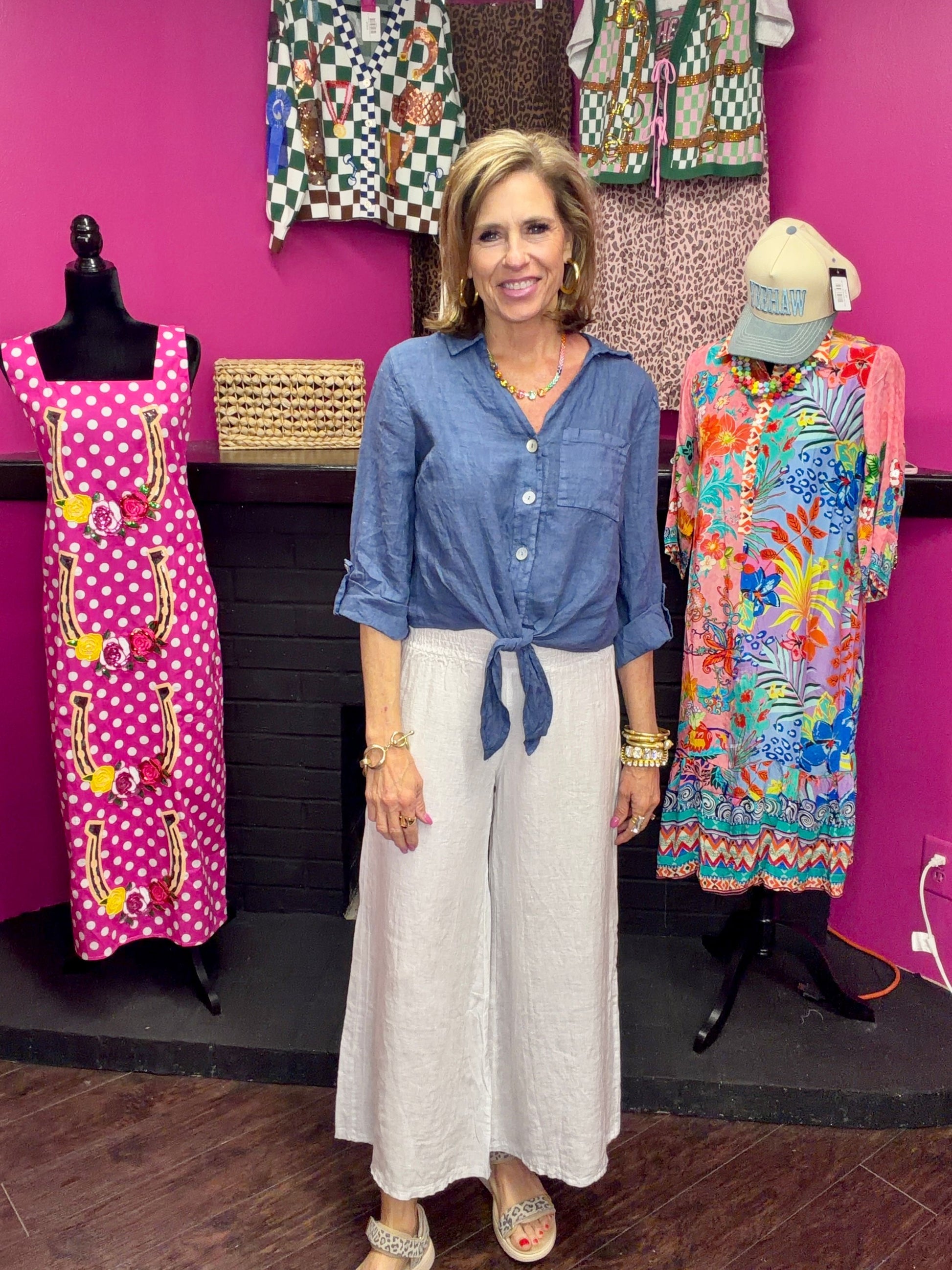 Effortless elegance in 100% linen. This high-waist pant features a comfortable wide elastic waistband and a flattering crop length that works year-round. Clean lines and a streamlined silhouette make it a versatile wardrobe essential. Perfect for layering or wearing solo on warm days.